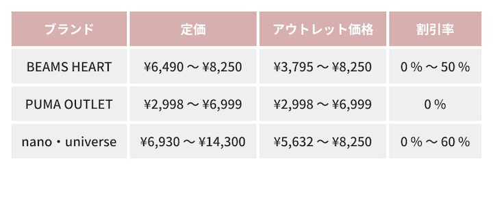 狙い目のアウトレット店