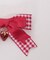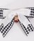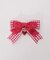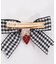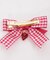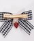ギンガムチェックと光沢のきれいなサテンリボンを重ねたダブルリボンに、揺れる立体いちごチャームを付けたヘアクリップです。