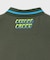 フライスの衿裏、肌に触れる箇所をメッシュ編みにしているので通気性が良く首回りがべた付きにくいようにしています。