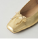 やや深めの履き口とスクエアのトゥ先が落ち着いた雰囲気を演出し、可愛くなりがちなバレエシューズをモードでトレンド感ある一足へと格上げ。