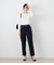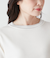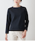 ボートネックの長袖プルオーバー。襟元や袖口の配色ステッチがポイントです。ニットならではの着心地や着脱のしやすさを損なわず、伸縮性を保つため、ステッチ部分はニットのジャカード編みで表現しました。着丈はややコンパクトで、すっきりとしたシルエットです。