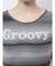 Groovy(=楽しい、魅力、素晴らしい)の文字が胸元に入ったグラデーションニット。