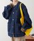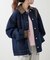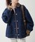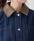 デニム素材×表面感のある合皮の衿部分がヴィンテージライクな抜け感のある雰囲気に。