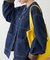 合皮素材の衿は取り外しが可能なので、雰囲気を変えてスタイリングを楽しめるのも
