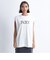 リブ素材のノースリーブミニ裏毛トップス。脇の切り替えがポイントで、ゆるめのサイズ感なので、ロンTとレイヤードしてベスト的に着るのがおすすめ。また、一枚で着る場合はアームホールが広めなので、ブラトップをインして着るとキュートです。フロントにあしらったレトロタッチのロゴがアクセント。