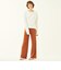 パンツはヒップ下からすとんと落ちるストレートシルエットで抜け感のある一着。