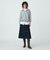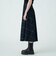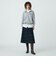 スカートはたっぷりとした分量感でボリュームがありつつも、ウエストの別布使いや腰まわりをややタイトにすることですっきりとしたバランスに。
