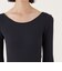 ラウンドネックプルオーバーはデコルテを見せるような抜け感のあるカッティングにやや深めのバックネックラインで、女性らしさもありつつヘルシーな印象に。