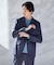 同素材のセットアップに、インナーはテーラードニット(070-12005)やクルーネックのジャージを合わせると、程よくリラックスした雰囲気にになり、お薦めです。