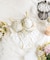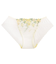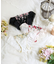 サイドにはお揃いのアップリケをあしらい、上品な華やかさを演出。レース全体へほのかにラメ糸をほどこすことで、清楚な女の子らしいイメージに仕上がりました。カラーによって異なるアジサイの表情に、思わず心ときめくコレクションです。