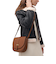 ファスナーポケット1つ、フロントスライドポケット1つ、バックスライドポケット1つ、調節可能なクロスボディストラップ1本を備えたレザー製クロスボディバッグです。