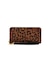コーティングキャンバスにレオパードプリントを施したジップクラッチです。ファスナーポケット1つ、紙幣用コンパートメント2つ、マチ付きポケット3つ、RFIDライニング、取り外し可能なリストレットストラップ1本を備えています。