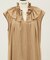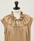 襟元のラッフルをポイントに、裾にかけてはフレアーシルエットになっているので甘くなり過ぎず着こなせます。