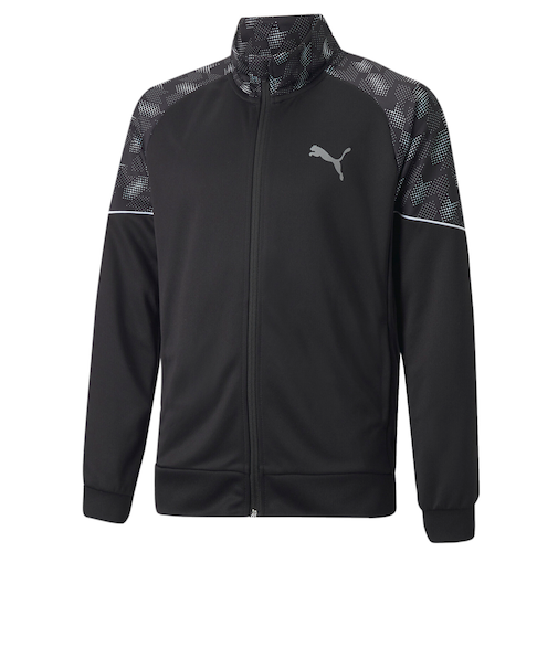 詳細スタンドカラー仕様で首元までしっかりと閉める事ができます。シンプルなデザインながらも、左胸側のプーマキャットのデザインプリントがアクセントに。吸水性と速乾性に優れたポリエステルを使用しているので、アクティブに活動するお子様におすすめのアイテムです。