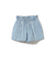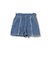 カジュアルだけど、ちょっぴりガーリー♪サイドのフリンジが目を引くデニムショートパンツ。裾に向かって広がるAラインのシルエットで、女の子らしさをプラス。ウエストはゴム仕様なのでお着替えも楽々です。