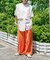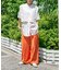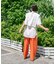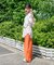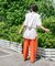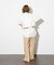 着丈が長過ぎないのでパンツ&スカートのどちらにも好相性。プリントパンツなどデザイン性のあるボトムにもマッチします。シンプルなワンピースの上に羽織っても◎